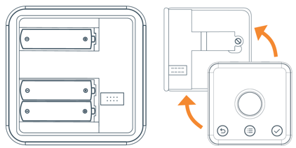 If you have our newest thermostat, the Hive Thermostat Mini as shown below, a red battery symbol means your batteries need to be replaced with 4x AAA batteries. To change them, please follow these steps below, the same as with the Hive Wireless Thermostat above.