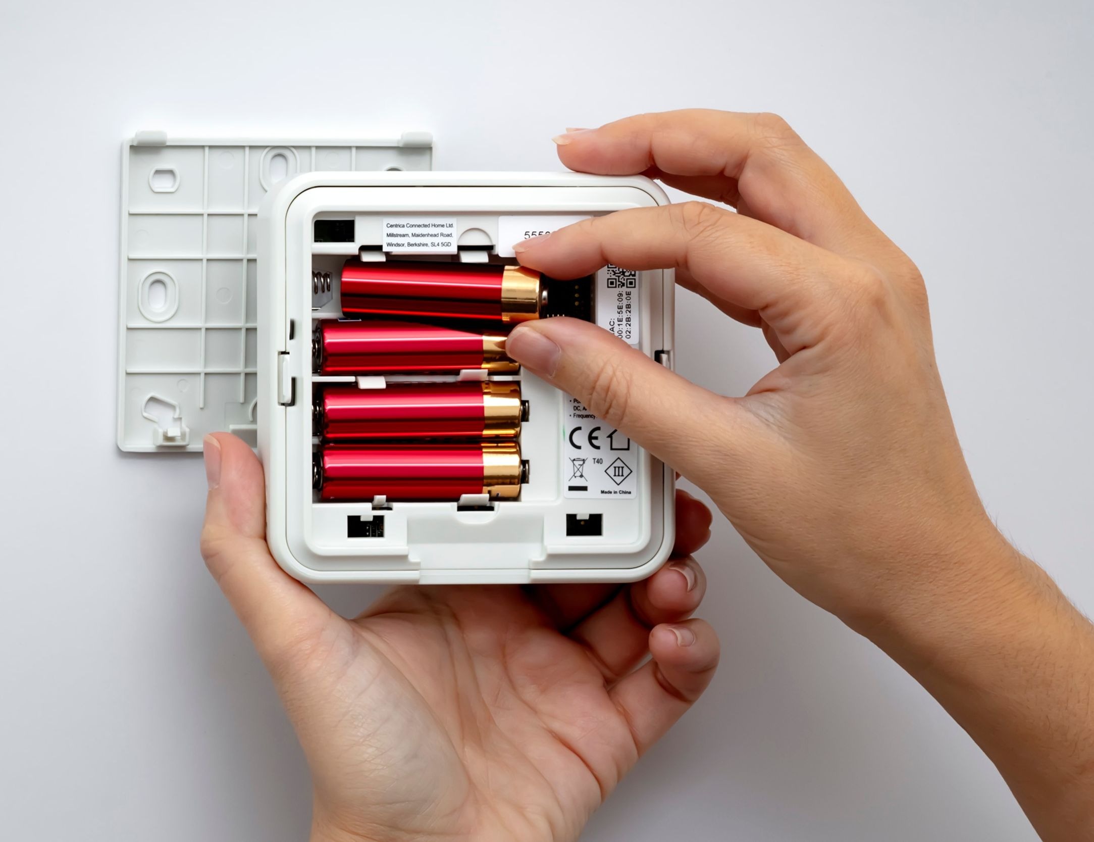 To reset the thermostat, hold the thermostat in your hand with the back facing you. Hold down the ‘+’ and ‘-’ buttons on the front of the thermostat at the same time. Keep a hold of those buttons while putting the battery back in and keep holding them in until the word ‘FIND’ appears on the screen. At this point, let go of the buttons.